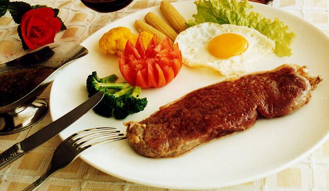 肉眼牛排是从近肋骨末端的一少部分切下来,该处肉质柔嫩且多汁(有雪花纹),滋味无穷。肉眼牛排一般指取自牛身中间的无骨部分,[眼] 是指肌肉的圆形横切面,由于这个部分的肌肉不会经常活动,所以肉质十分柔软、