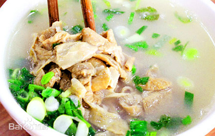 是用羊的大肠和小肠熬制而成,据“老开封”讲,过去卖羊双肠的大都没有固定的摊位,而是担着挑儿沿街叫卖,担子的前边放着用劈柴燃烧的小炉子,炉子的上面放着熬汤的小深兜锅,担子的后边放着事先熬好的老汤、肠子和