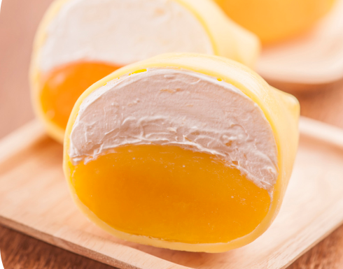 以薄薄的班戟皮包着新鲜芒果和鲜打忌廉,口感丰富不腻口,让人一口接一口。