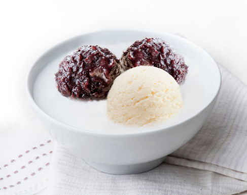 冰凉的雪糕加上加上混有芋头粒和粟米的黑糯米球,令甜品口感更丰富。