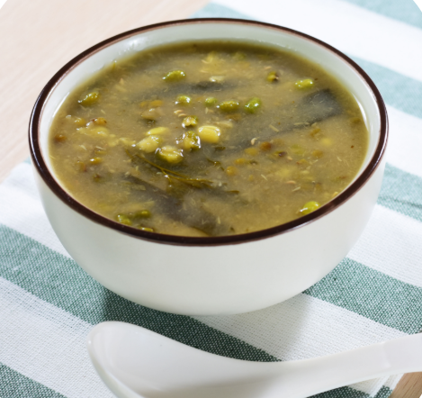 绿豆加上海带,有清热开胃的功效,加上淡淡陈皮香, 适合任何季节食用。