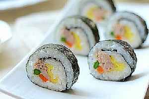 材料(3条):米饭3小碗,寿司醋3勺(也可以自已调:醋糖盐5:2:1的比例),金枪鱼罐头1罐,胡萝卜条3根,芦笋3根,鸡蛋1个,盐少许。寿司海苔3张。