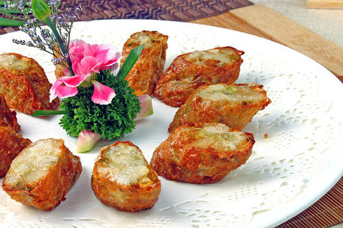 腐皮包裹马蹄肉馅,好味道