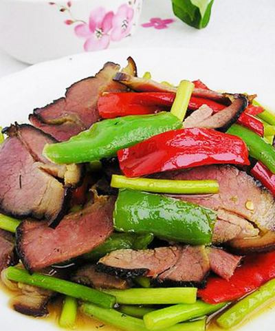 蒜苗炒腊肉是一道菜品,制作原料主要有腊肉、蒜苗等,口味鲜美,营养丰富。最后下蒜苗叶子,变色即可出锅。