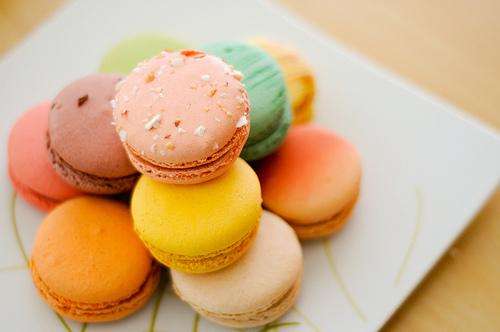 马卡龙,又称作玛卡龙、法式小圆饼,是一种用蛋白、杏仁粉、白砂糖和糖霜制作,并夹有水果酱或奶油的法式甜点。口感丰富,外脆内柔,外观五彩缤纷,精致小巧。