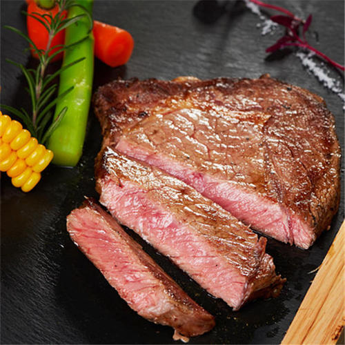 肉眼牛排是从近肋骨末端的一少部分切下来,该处肉质柔嫩且多汁(有雪花纹),滋味无穷。肉眼牛排一般指取自牛身中间的无骨部分,[眼] 是指肌肉的圆形横切面,由于这个部分的肌肉不会经常活动,所以肉质十分柔软、
