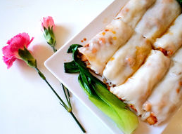 肠粉皮里面包着肉片、鱼片、虾仁等等各种各样的食材,配上秘制的酱油,味鲜、爽滑、口感独特。