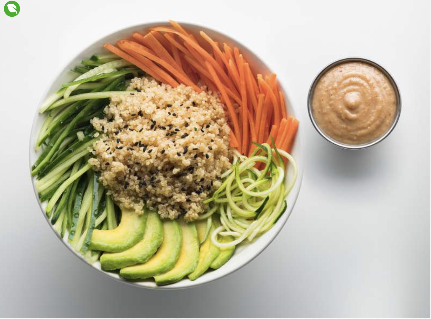 黄瓜,鳄梨,胡萝卜,西葫芦,藜麦,芝麻,坚果酱