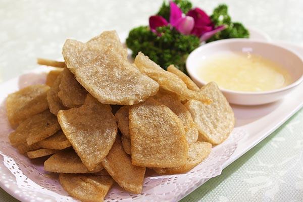 灌肠是老北京特有的汉族风味小吃,属于京菜系。炸灌肠的时候须先将成型的灌肠切片,灌肠切片是有讲究的,要一边厚,一边薄,这样才能酥脆可口,软中有脆。主料是选用性味甘、平的甘薯淀粉,经蒸熟晾凉,切薄片,平锅