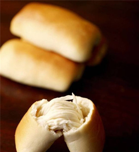 这是京津地区著名小吃。银丝卷以制作精细、面内包以银丝缕缕而闻名。色泽洁白,入口柔和香甜,软绵油润。烤银丝卷即是先蒸后烤,烤香后趁热掰成两半,银丝松软,味香而甜,别有一番风味。