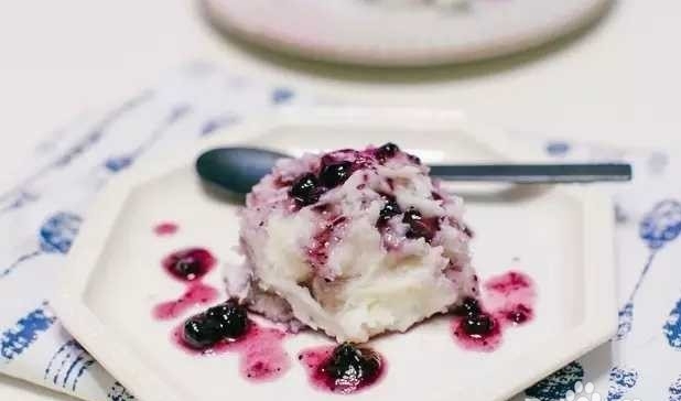 山药泥是沙沙的质感,配上酸奶和蓝莓果酱,一口下去,甜甜的,很好吃呢。 做法: (1)取一小根山药洗净刨皮(注意刨皮最好在水里,不然容易手痒),蒸大概15分钟左右蒸熟(软化到可以碾成泥)。(2)碾成