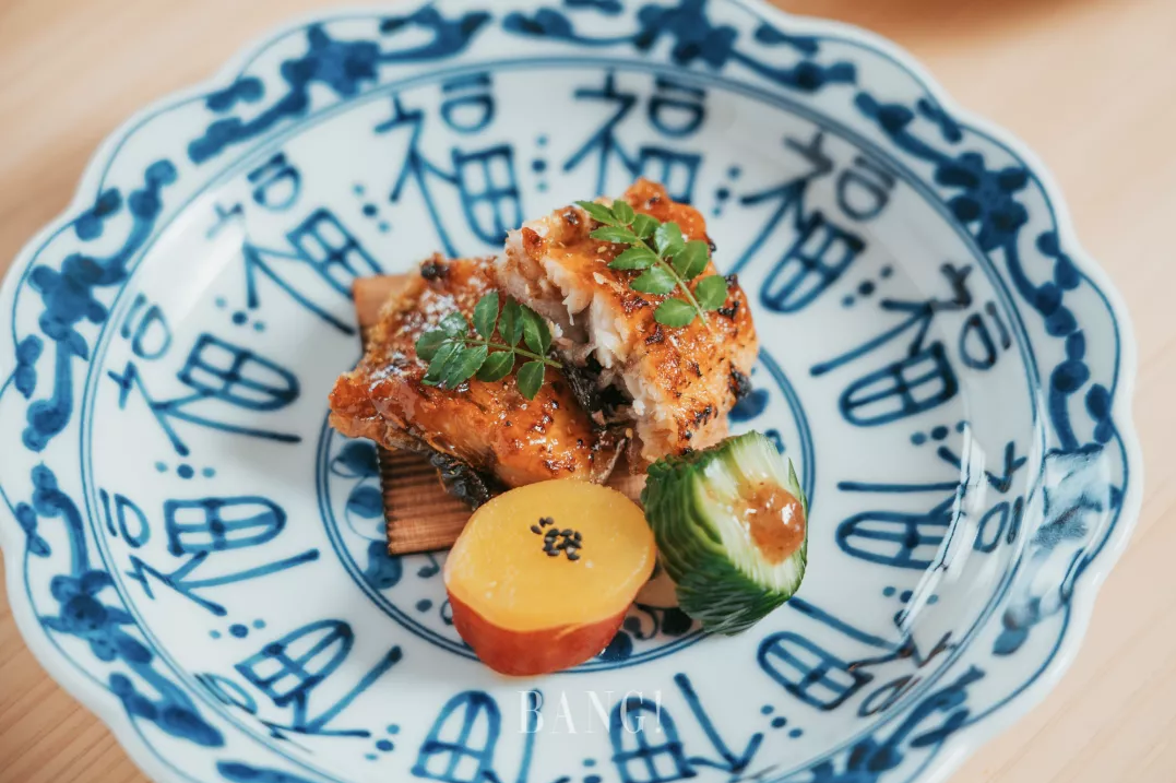 非常贴合时令的食物,夏日要吃鳗鱼,尤其烤鳗为佳,这里是关东的做法,先蒸后烤,鳗鱼肉质肥腴,酱汁入味。作为配菜的柠檬蜜煮山芋和梅子酱点缀的黄瓜,清口又解腻。