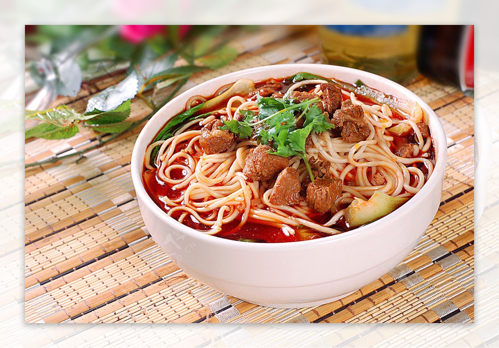 牛肉面,是一道常见的面食,也是甘肃省兰州市的一道传统美食;该菜品具有“一清、二白、三绿、四红、五黄”的特征,且色香味美,誉满全国。