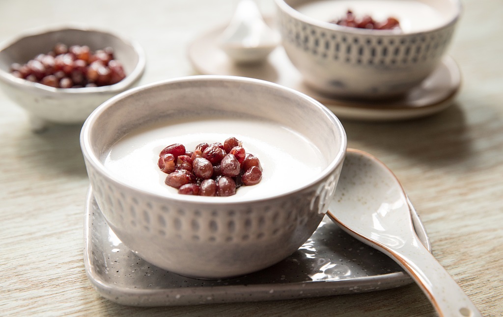 红豆双皮奶是一种粤式甜品,是以普通牛奶为原料做成的双皮奶撒上煮熟的红豆而成。一碗上佳的红豆双皮奶,其状如膏,其色洁白,质感细腻嫩滑,口味甜香清淡。