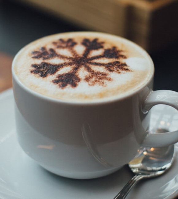 牛奶与糖浆结合,加入奶沫,“拉花式”网格,象征着甜蜜的印记