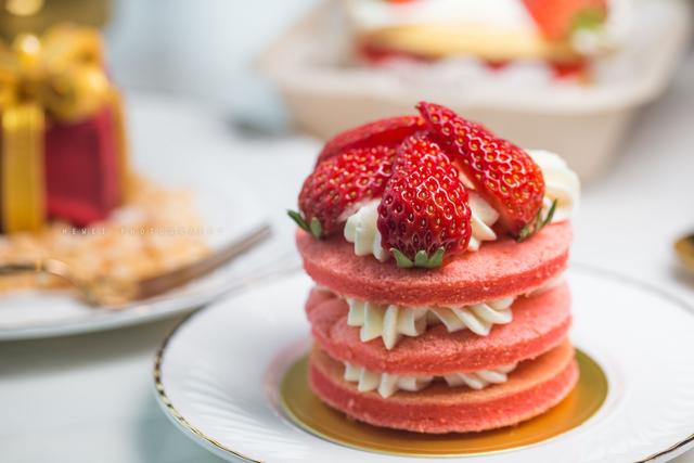 表层和夹层都是满满的草莓和奶油,搭配丝滑细腻的红丝绒,口感丰富,甜而不腻。