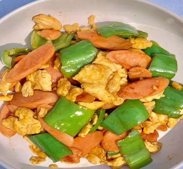 三色鸡蛋由鸡蛋火腿青椒组合而成,美味可口
