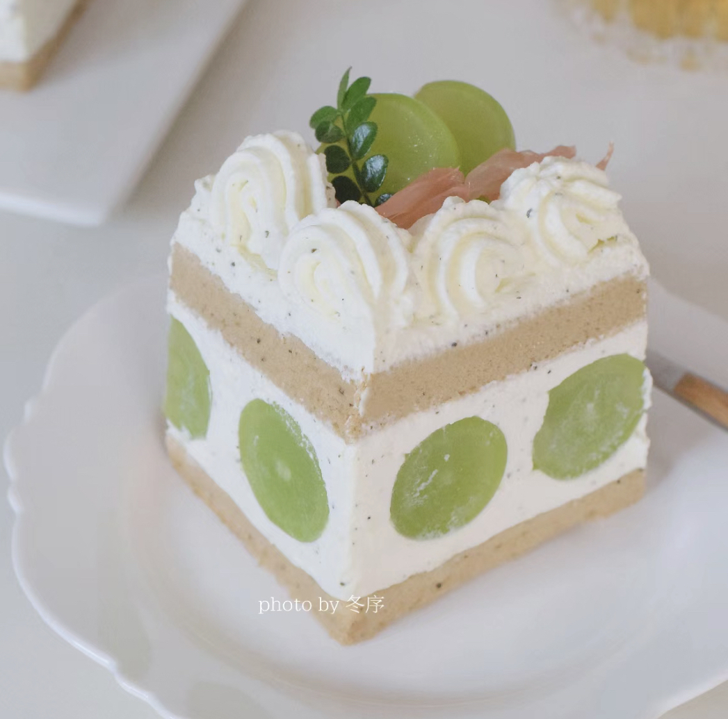 伯爵茶蛋糕搭配青提+红心蜜柚,混合着伯爵茶奶油,一口下去果香与茶香融合出的清爽感,太好吃了!