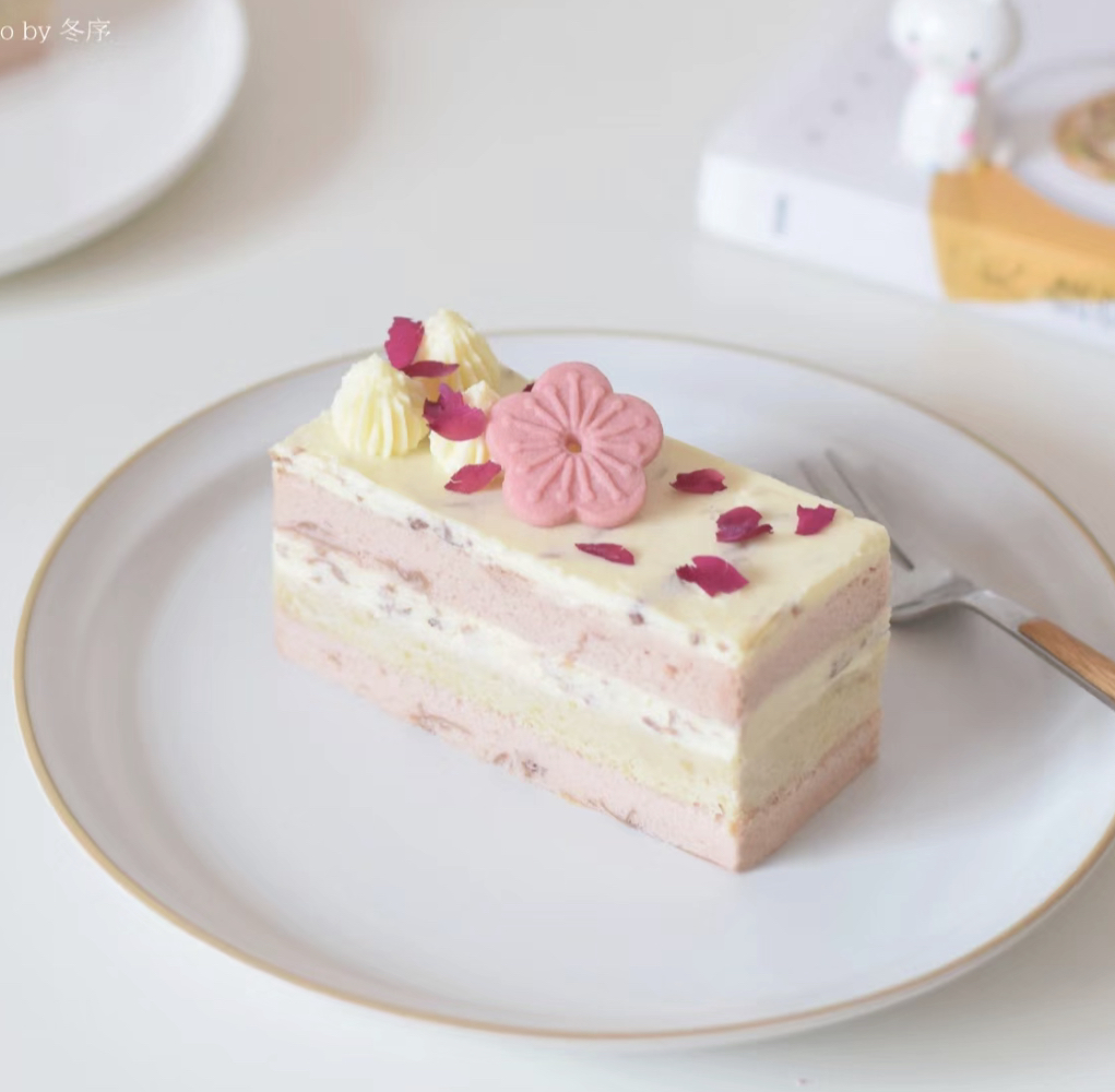 玫瑰栗子蛋糕,玫瑰蛋糕胚+玫瑰奶酪+栗子泥,甜蜜三重奏~