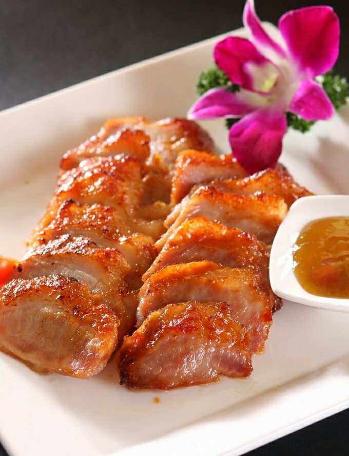 蜜汁烤里脊是一道充满诱人香甜味道的肉类菜品。精选的猪里脊肉首先经过腌制,然后在烤箱中烤至金黄色,最后涂上香甜的蜜汁,使得肉质保持多汁,同时带有微焦的外皮。