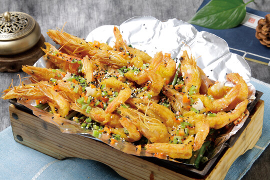 香煎蒜香虾外酥内嫩,蒜香扑鼻,是一道海鲜前菜。