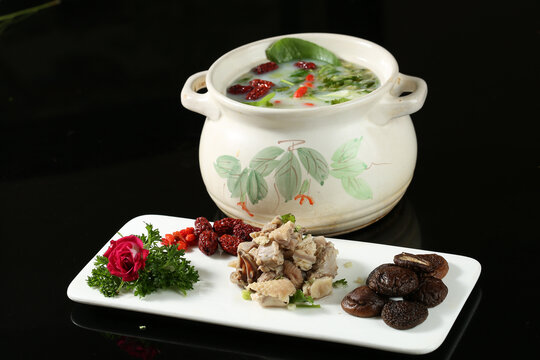 香菇鸡汤以新鲜的香菇和鸡肉为主料,鲜香可口,适合各个季节。