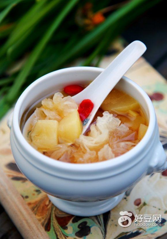 梨就有治咳的药用,还有银耳也有滋阴润肺之功效,于是我就加到上面提到的汤水里,煮上了一大锅,是无病防病,有病治病。 还有加了梨和银耳,也加了润滑滋润的口感;去除了葱白,少了冲味,可以做为下午茶修身养生之