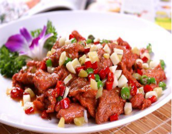 小炒牛肉是一道美食,制作原料主要有牛肉、玉兰片、鸡蛋清等,辅料有小葱、江米酒、 味精、酱油、姜、植物油、盐、淀粉等,属于川菜。